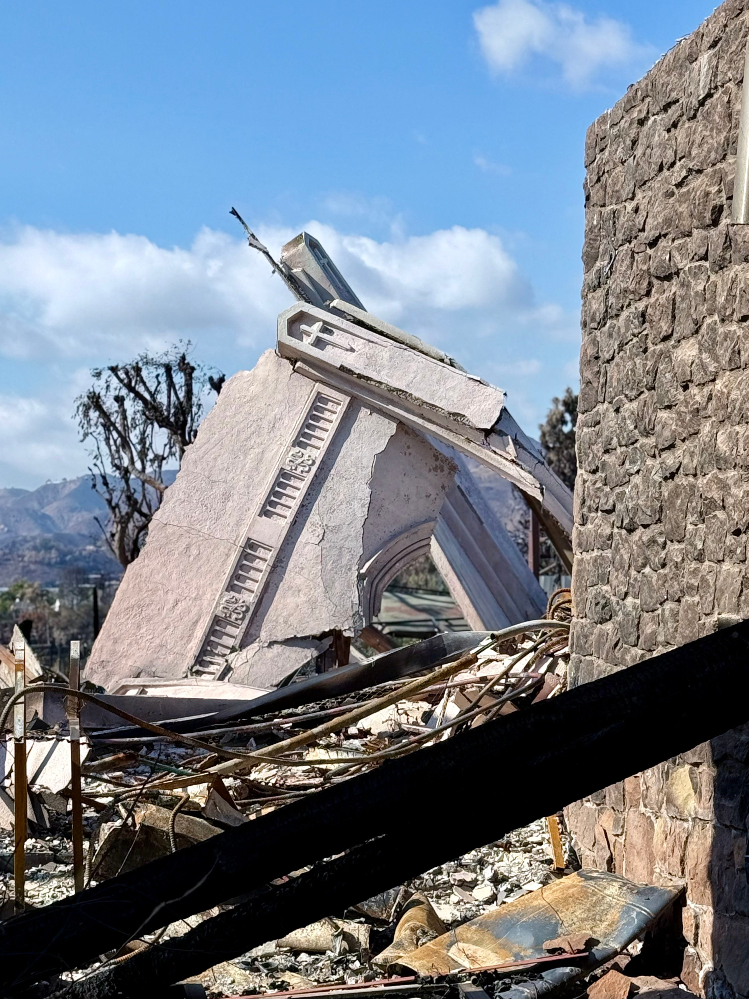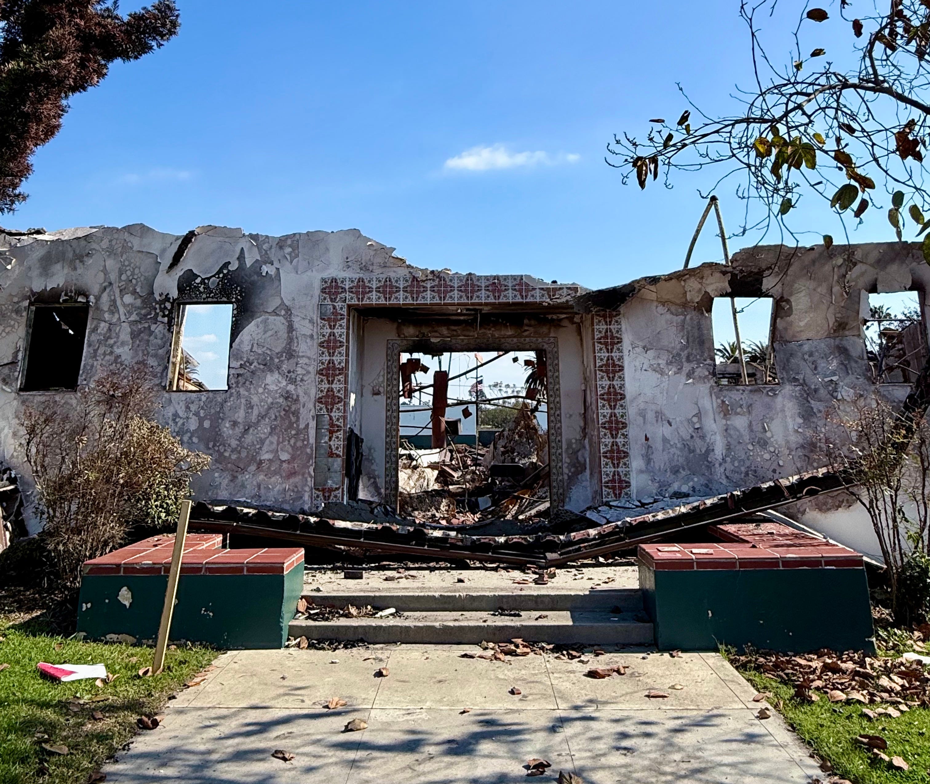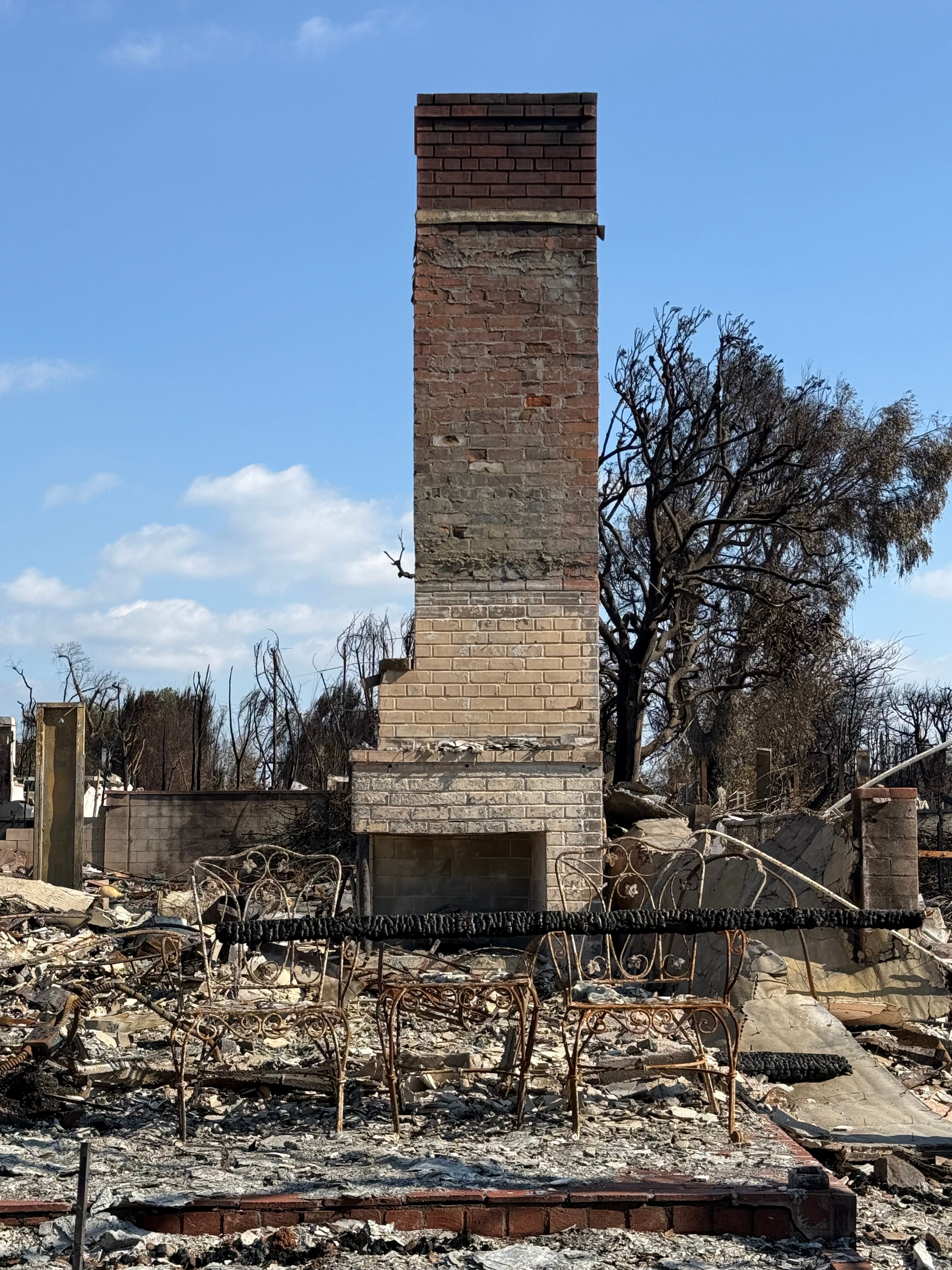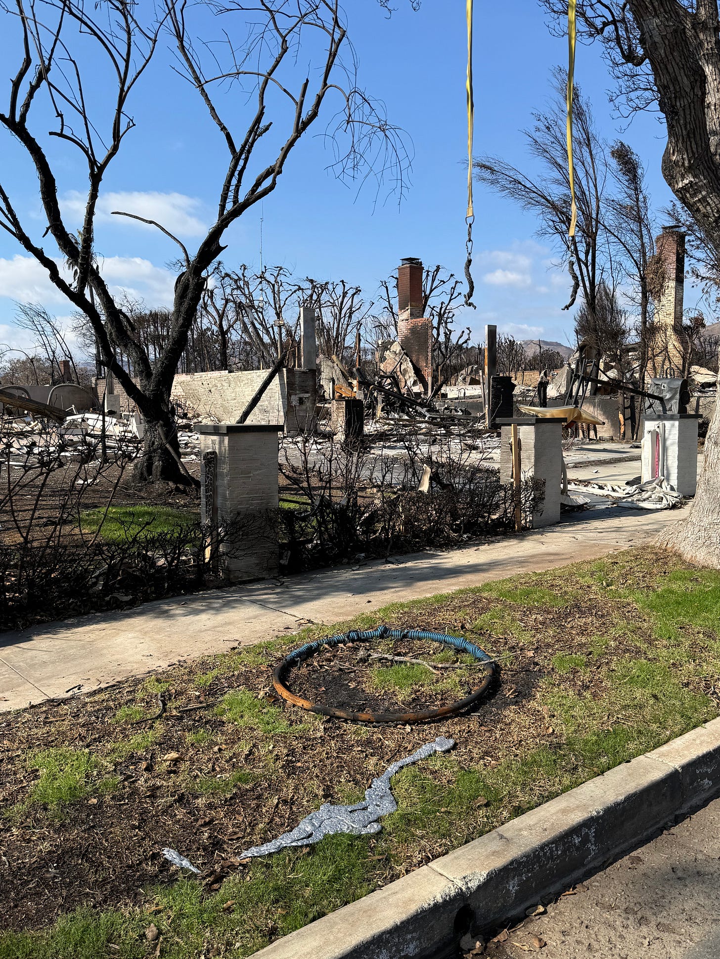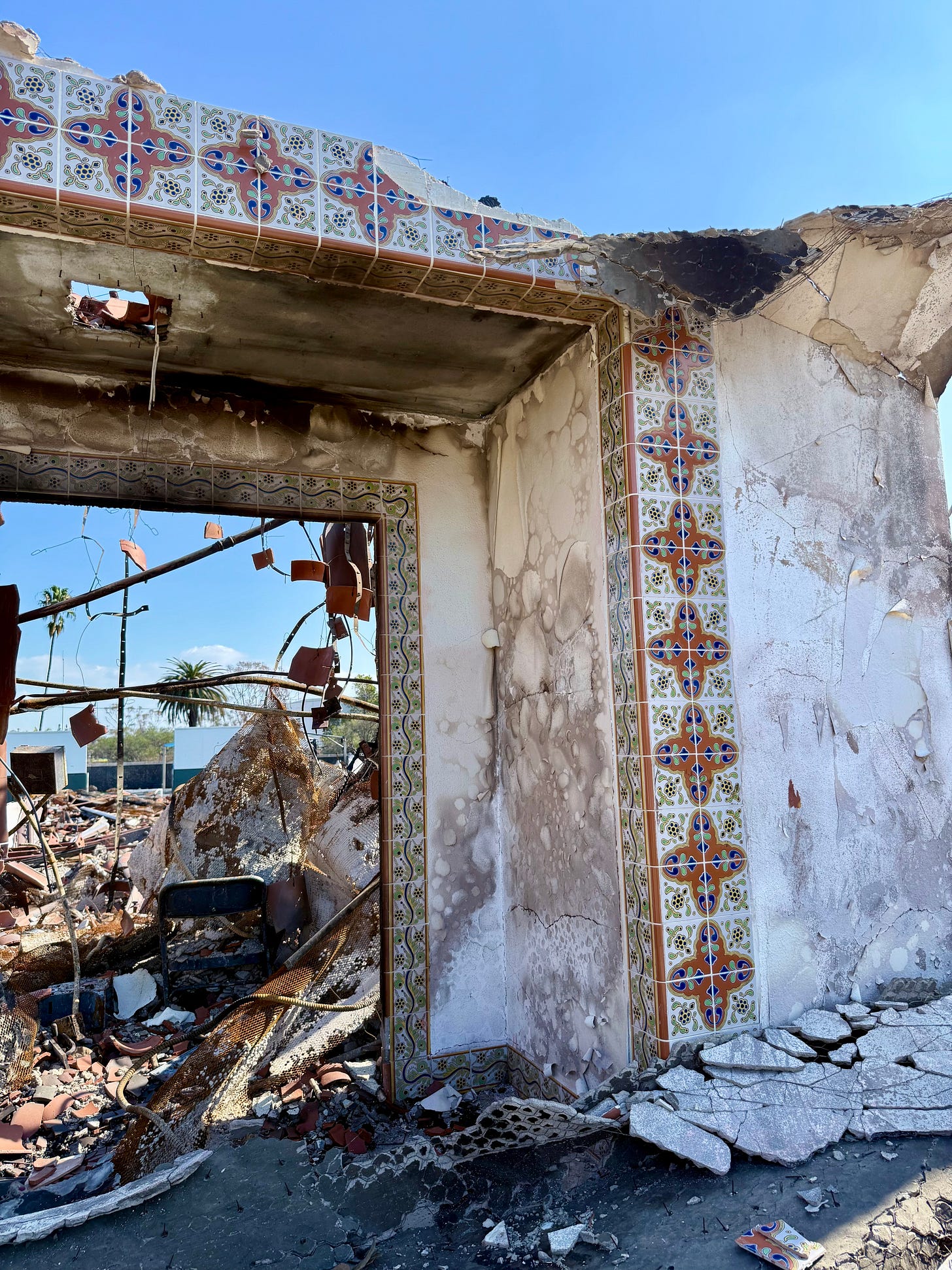 The remaining chimneys felt very profound they reminded me of tombstones marking where a family once lived. A near by tree swing broke my heart, this neighborhood was full of children and I know one day their laughter will return. My boyfriend’s daughter lost her school and standing at the auditorium steps left me in disbelief. Last spring the parents had assembled for the orchestra concert and now all that remains is the threshold and some of the original tiles. The school was built in the late 1920’s and dedicated in 1930 most likely the tiles were constructed from local clay and created at Malibu Potteries, a tile company that also burnt down, luckily there are craftsman recreating these pieces, I know this because I have used them on other interior design projects. These little cues from our past ignite something deep within me. Those tiles represent people who came before us and made me feel a responsibility to use my historic preservation degree to help rebuild this dream town by the sea.